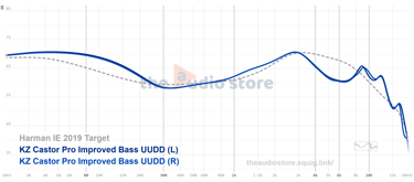 El KZ Castor (versión Bass) presenta una firma de sonido claramente coloreada, orientada a satisfacer a los amantes de las frecuencias bajas, siguiendo una curva Harman en los medios, con un refuerzo notable en los graves. Es un perfil que prioriza el cuerpo, la calidez y el impacto físico sobre la precisión técnica o la ligereza. La presentación general se percibe oscura y densa, ofreciendo una escucha relajada y libre de fatiga en los agudos, pero con una tendencia a la congestión en pistas complejas debido a su falta de aire y separación. Es una afinación "divertida" y macrodinámica, diseñada para sentir el ritmo más que para analizar los detalles.