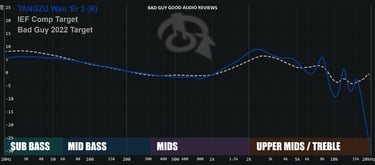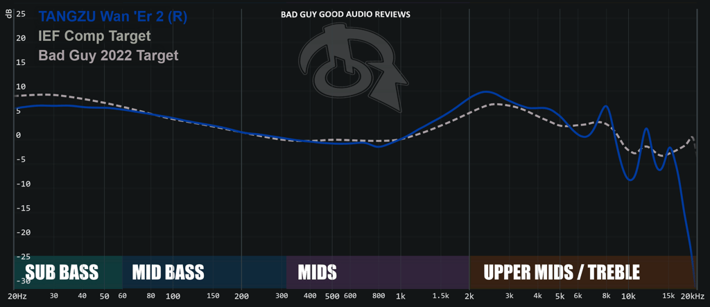 El rendimiento en bajas frecuencias del Wan Er 2 se centra en unos bajos prominentes y controlados, que ofrecen un golpe satisfactorio y limpio sin sentirse lento. Sin embargo, carece notablemente de profundidad en los sub-bajos, los cuales son apenas audibles y no proporcionan el retumbe esperado. Los graves superiores tienen una extensión decente, aportando cuerpo y calidez general al sonido sin invadir excesivamente las frecuencias medias.